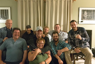 On Saturday we had a combination of birthday celebrations and finding the HMS Terror. The Bergmann crew rolled in early Saturday morning and when Captain Gerry contacted me later that day we were looking forward to getting together to hear the stories of them finding the Terror. Randy, the ship's chef, brought over some freshly baked bread and this amazing coconut caramel ice cream cake that he made on the boat for me. All of us gobbled most of that cake up, going back for seconds and some of us even thirds. The Bergmann Boys (my loving name for them) brought me back a large inuksuk that carver Lucas Aaluk from Gjoa Haven made. Ryan, Terry and Greg brought their guitars and the rest of us brought our voices...not saying we were good singers but we all tried. Greg is not only a great guitar player he is also a fabulous artist who gave me a painting a couple years ago and again this year he gave me a painting of birch trees. I wasn't expecting any gifts and I will treasure both. It was a great evening of celebrating with good friends.